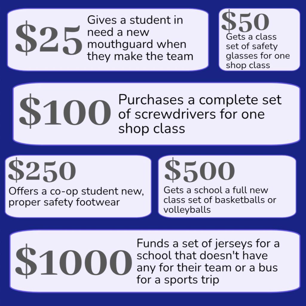 – Purchasing sports equipment/jerseys for a local school